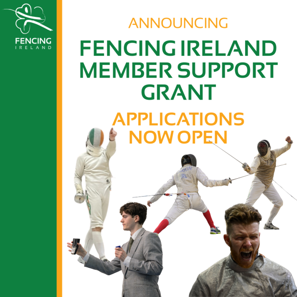 Fencing Ireland is proud to announce the first application window for our new Member Support Grants! All full members of Fencing Ireland are eligible to apply for funding for projects relevant to Irish fencing. €1,000 is available!